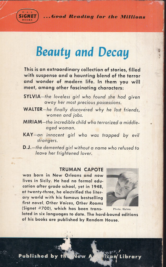 Author: Truman CapotePublisher: Dolphin C26Signet 878Year: 1951 Print: 1 Cover Price: $Condition: Very Good. Light wearGenre: Fiction/GGAPages: 144110125097E