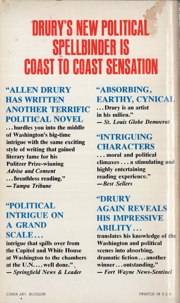Capable of Honor by Allen Drury (1966) is a political drama and fiction novel, serving as the third book in the Advise and Consent series. It examines the role of the media in shaping American politics and foreign policy, focusing on a, contentious presidential primary where press, radio, and television influence the political process.