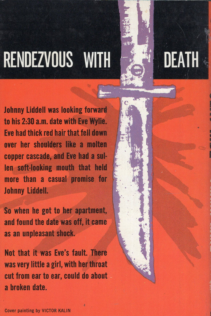 Johnny Liddell was looking forward to his 2:30 a.m. date with Eve Wylie. Eve had thick red hair that fell down over her shoulders like a molten copper cascade, and Eve had a sullen soft-looking mouth that held more than a casual promise for Johnny Liddell.