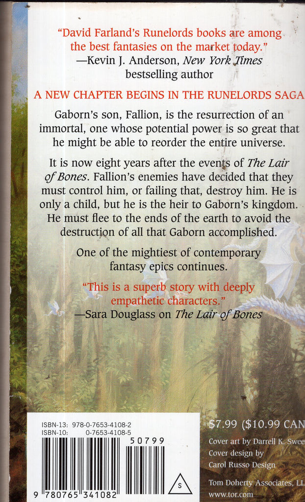 These forces have discovered that Gaborn's son is the resurrection of an immortal, one whose potential power is so great that he might be able to reorder the entire universe. Fallion's enemies have decided that they must control him, and failing that, destroy him. He is only a child, but he is the heir to Gaborn's kingdom, and so must flee to the ends of the earth to avoid the destruction of all that Gaborn accomplished.