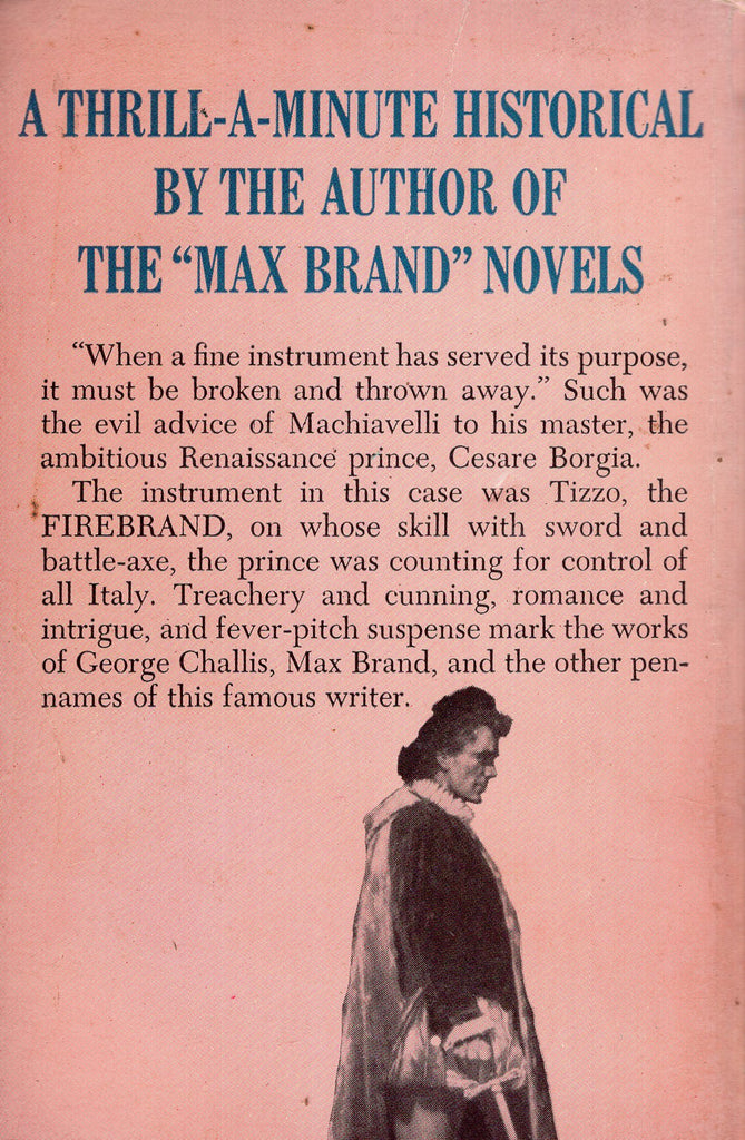 One of the greatest western authors of all time, superstar pulpsmith Max Brand, the pen name of Frederick Faust, was an incredibly proficient author who wrote many books, stories, and even poetry. His Westerns were always different, with complex plots and characters, and uncertain endings... But his historical adventures rank among the best stories he ever wrote. These seven stories of 16th Century Italian Renaissance swashbuckling swordsman Tizzo are tightly-plotted, action-packed adventures which were rarely equaled in quality by Brand's contemporaries. It collects the final four "The Cat and the Perfume", "Claws of the Tigress", "The Bait and the Trap" and "The Pearls of the Bonfadini".