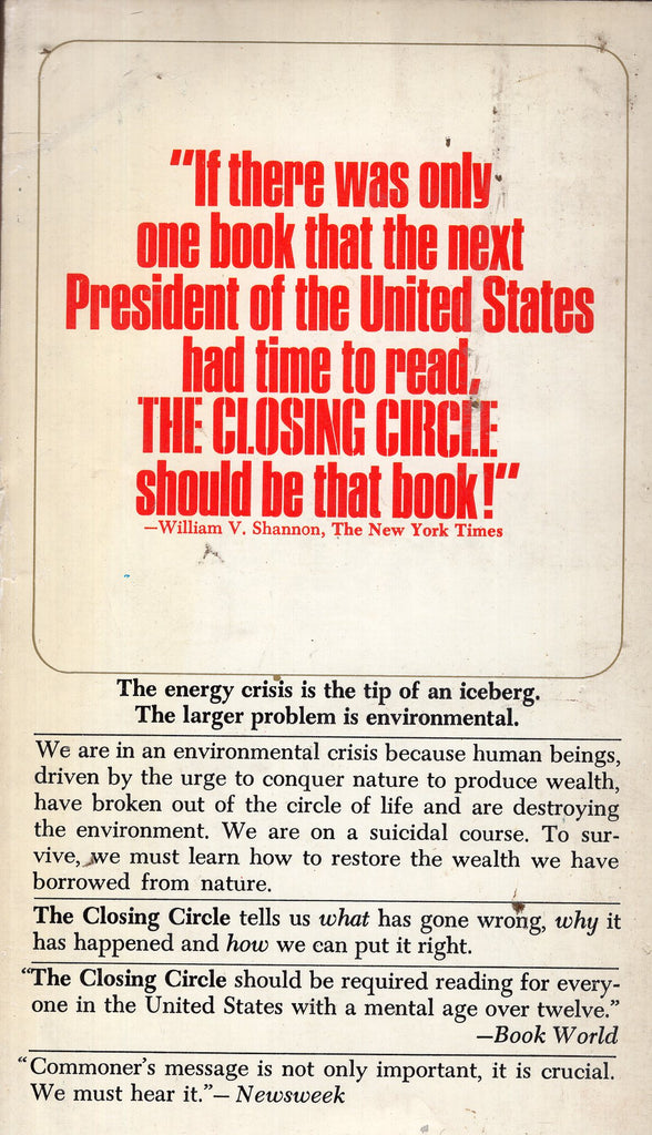 "Readers interested in the history of environmental thought will be fascinated to see how many of today's crises were already understood almost fifty years ago. We've made progress in a few places, but it's hard to read Commoner's prescient warnings without a sigh for how little attention we've actually paid to these great challenges." — Bill McKibben, author of Falter and The End of Nature