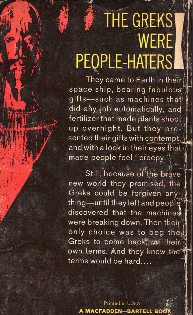 They came to Earth in their space ship, bearing fabulous gifts - such as machines that did any day job automatically, and fertilizer that made plants shoot up overnight. But they presented their gifts with contempt, and with a look in their eyes that made people feel "creepy".