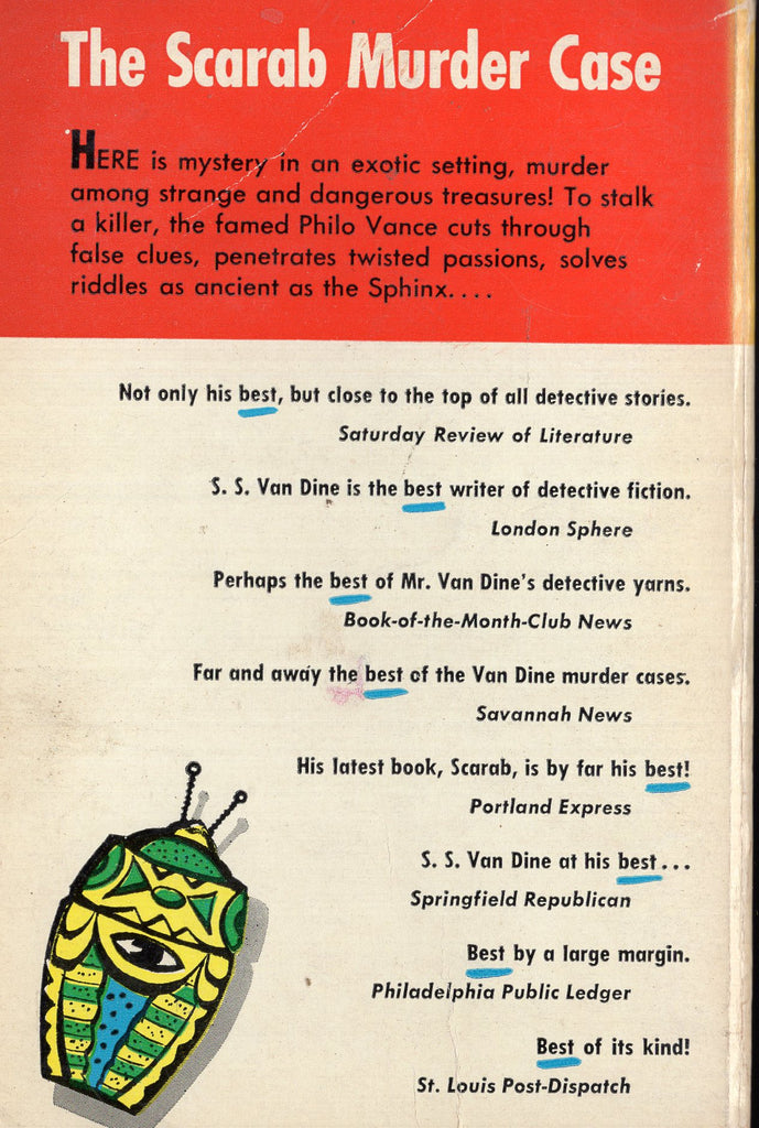 In 1922, English anthropologist Howard Carter discovered the long-hidden tomb of King Tutankhamun, and the world went Egypt-crazy. Just a few years later, New York is not immune to the craze, and even Philo Vance, that eminent scholar-sleuth, has some sympathy for the fad—though of course he knows lots more about the topic than Carter ever did. When a wealthy Egyptologist is murdered, with mysterious inscriptions and artifacts dotted round, it's only natural that John FS Markham calls Philo for help. After all, Markham is merely the New York District Attorney, whereas Philo Vance is . . . well, Philo Vance.