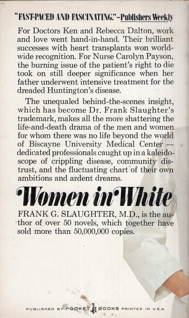 The unequaled behind-the-scenes insight, which has become Dr Frank Slaughter's trademark, makes all the more shattering the life-and-death drama of the men and women for whom there was no life beyond the world of Biscayne University Medical Center - dedicated professionals caught up in a kaleidoscope of crippling disease, community distrust, and the fluctuating chart of their own ambitions and ardent dreams.