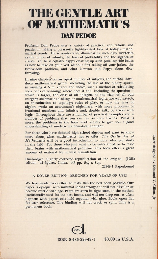 This lighthearted work uses a variety of practical applications and puzzles to take a look at today's mathematical trends. In nine chapters, Professor Pedoe covers mathematical games; chance and choice; where does it end; automatic thinking; two-way stretch; rules of play; an accountant's nightmare; and double talk. Practical examples and problems are featured throughout.