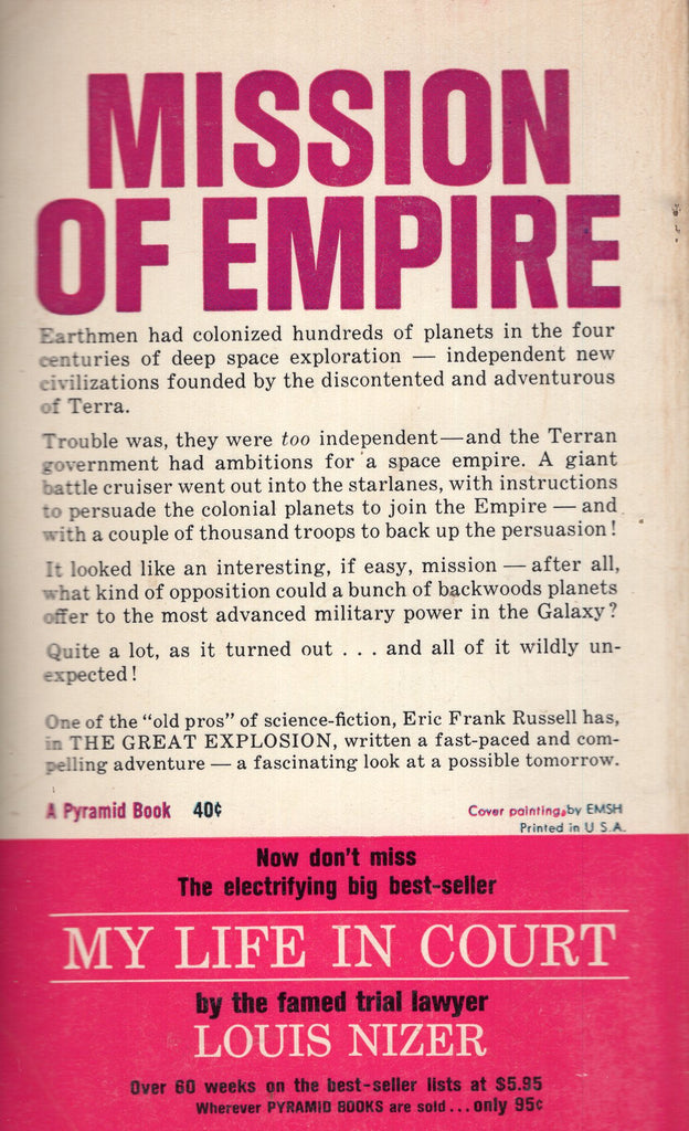 Eric Frank Russell's The Great Explosion is a science fiction comedy that explores the purpose and necessity of government with his typical wit. In 1985 it was inducted into the Prometheus Hall of Fame, an honor reserved for classic libertarian fiction.