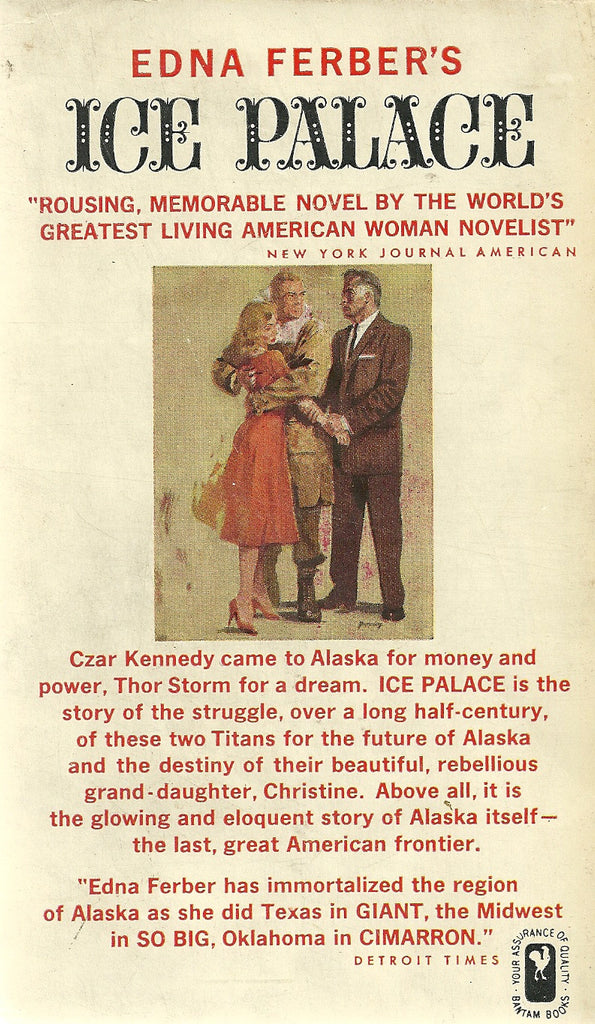 Review By varcsix Format:HardcoverEdna Ferber's book, Ice Palace, is a well told story of Alaska and its long journey to statehood. This book written in 1958, was just one year before Alaska did become a state. Christine, is the granddaughter of two men who are very influential in Alaska; both who represent totally divergent points of view. One loves Alaska for its beauty, its native people, its wildlife and all it represents as America's last frontier. The other is interested only in making a profit from it, and retaining political power. Through these fictional characters, Mrs. Ferber, reveals much history of Alaska and the people who inhabit it. Though dated, it still provides the reader with an appreciation of Alaska. I understand that the book was influential in the vote outcome which allowed Alaska to become a state at long last.