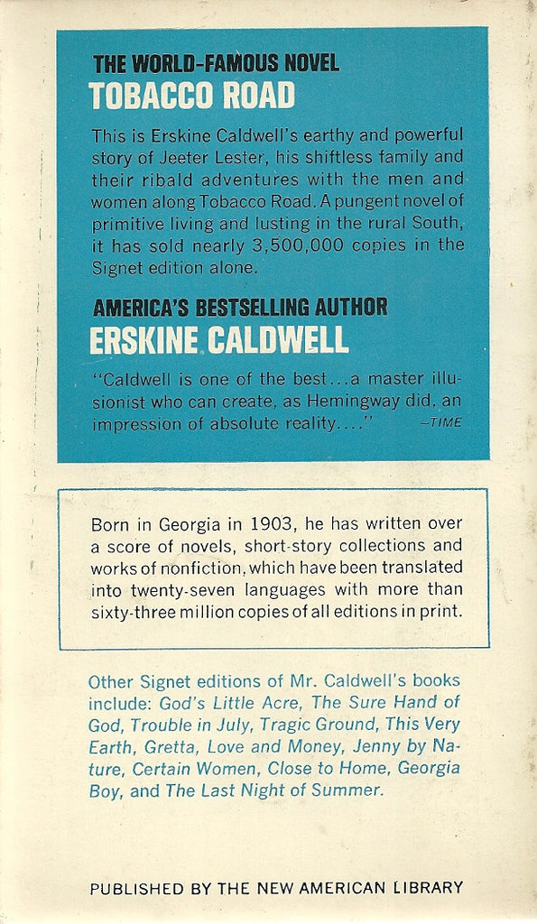 Banned and burned when first released in 1932, Tobacco Road is a brutal examination of poverty’s dehumanizing influence by one of America’s great masters of political fiction.