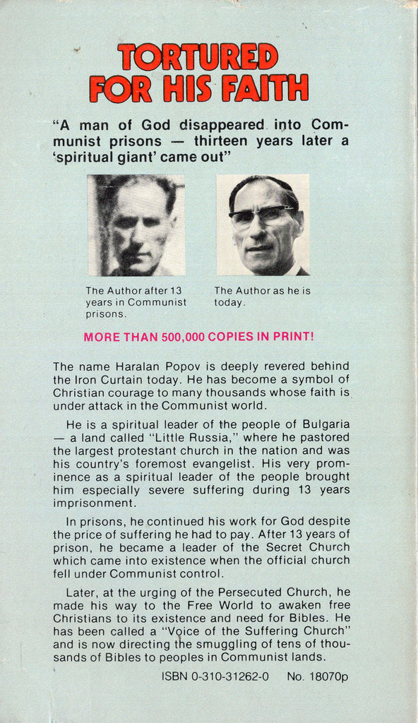Tortured For His Faith Has been published in more than twenty three languages. Has been No. 1 on the best-seller list (pocket books) for many years. More than one million copies sold. Has exposed the militant nature of atheistic communism for more than 30 years. Has inspired readers, strengthened their faith in God, and motivated them to a greater compassion for the Persecuted Church.